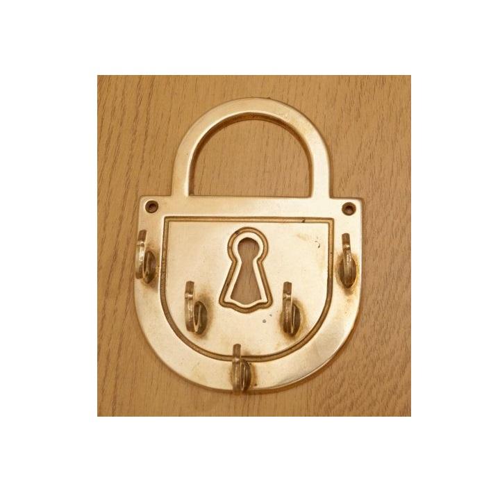 Llavero de pared de latón con diseño de forma de cerradura y 5 ganchos para colgar llaves de pared de Metal de buena calidad al por mayor para hogar y hotel