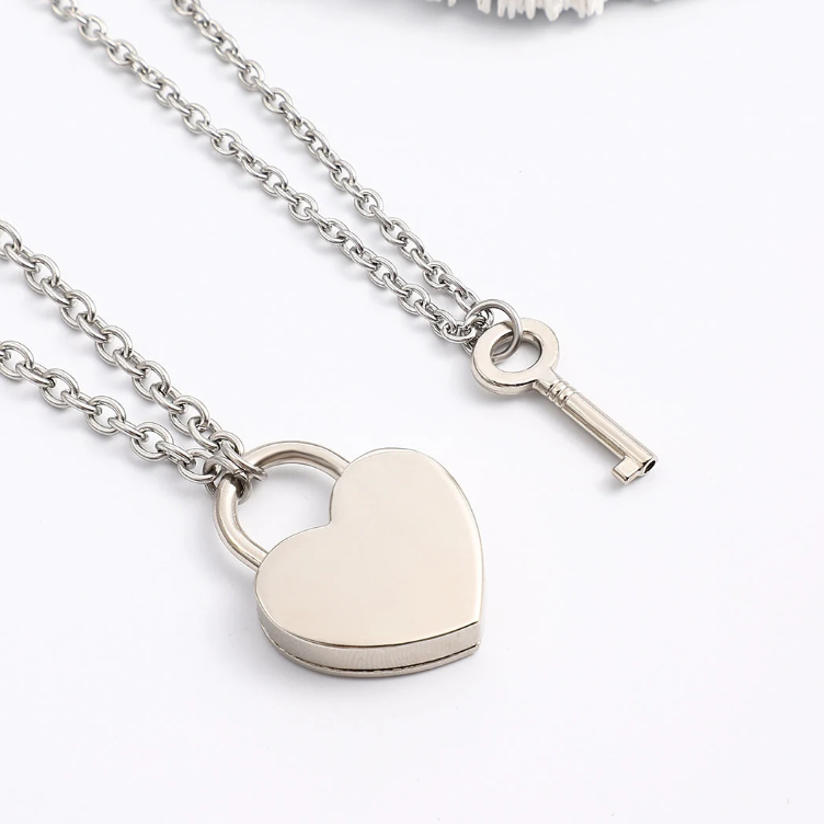 Joyería maestra-esclava estilo cerradura grabada con una cerradura en forma de corazón para collar de pareja de chicas buenas con colgante de cerradura de llave