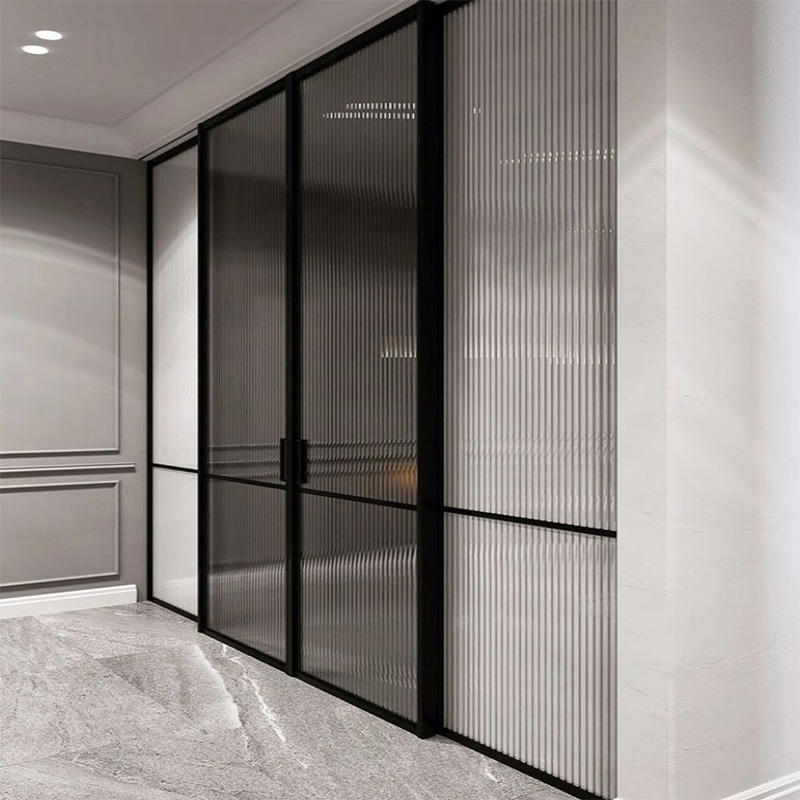 Estilo Loft Marco de acero deslizante silencioso Puerta de vidrio negro Puertas de partición Puerta de vidrio deslizante
