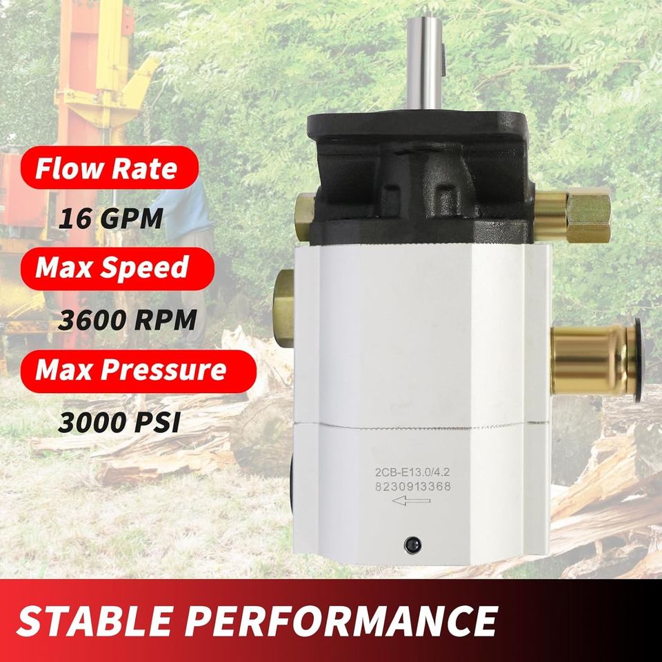 Bomba hidráulica para rajadora de leña de 16 GPM de 2 etapas con válvula de retención de control automático de 25 GPM, puerto de trabajo de 1/2 pulgada, bomba hidráulica con eje con llave de 1/8 pulgada