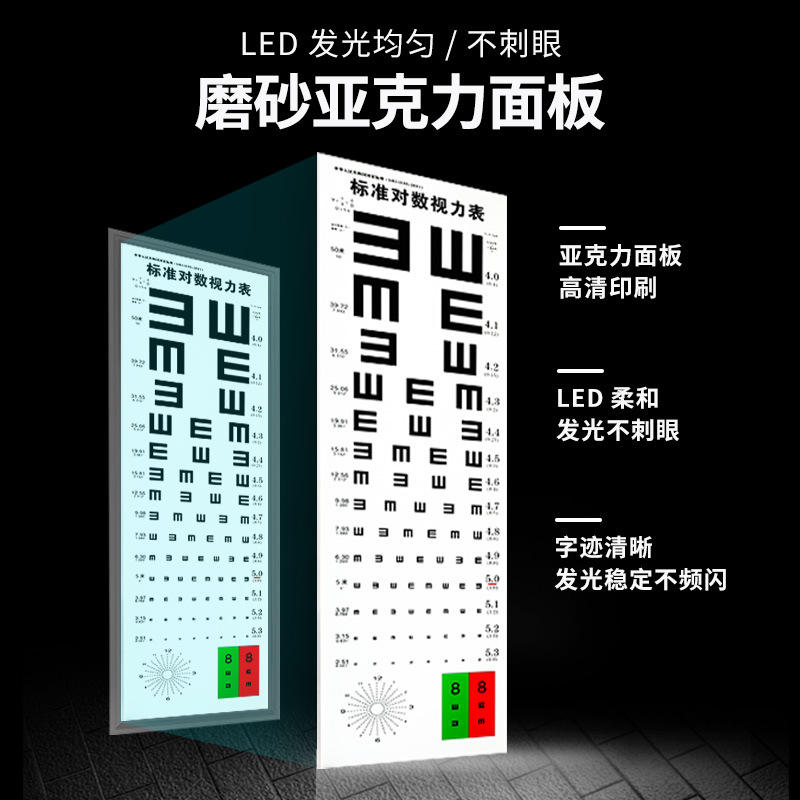 Caja de luz con tabla de visión logarítmica estándar con caracteres E para pruebas de agudeza visual en niños, adultos, jardines de infancia y hospitales.