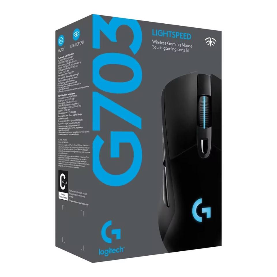 Ratón Inalámbrico para Juegos Logitech G703 Lightspeed con Sensor Hero 25K, Compatible con PowerPlay, Lightsync RGB, Ligero, 95G+10G Opcional