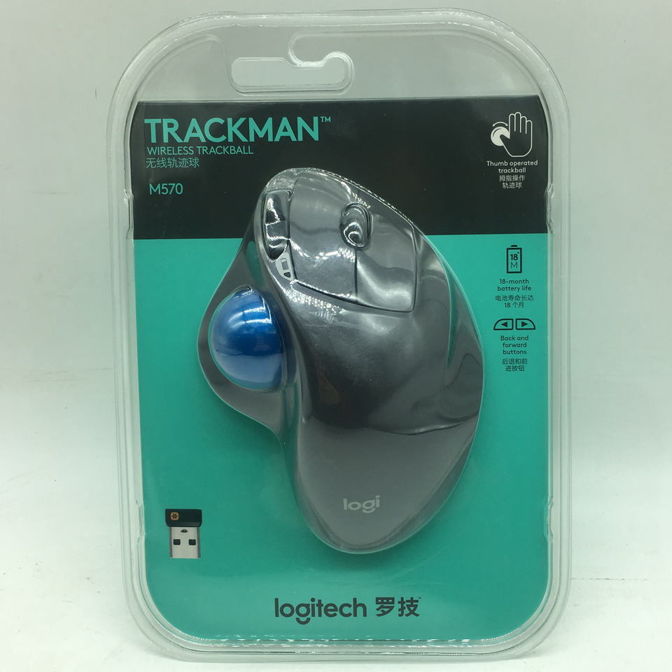 Ratón inalámbrico para juegos Logitech M570 2,4G, Trackball óptico, ratón ergonómico para jugadores para Windows 10/8/7, soporte para Mac OS, prueba oficial