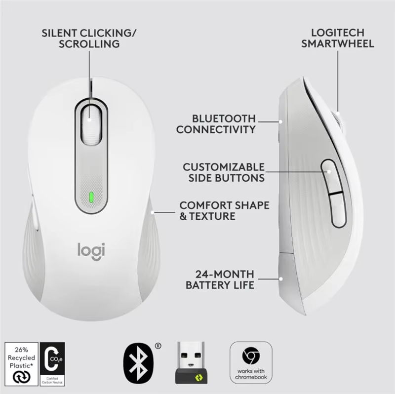 Ratón Inalámbrico USB Logitech M650/M650L con Bluetooth, Óptico y Silencioso, para Oficina, Portátil, PC, Mac, Multidispositivo, para Diestros