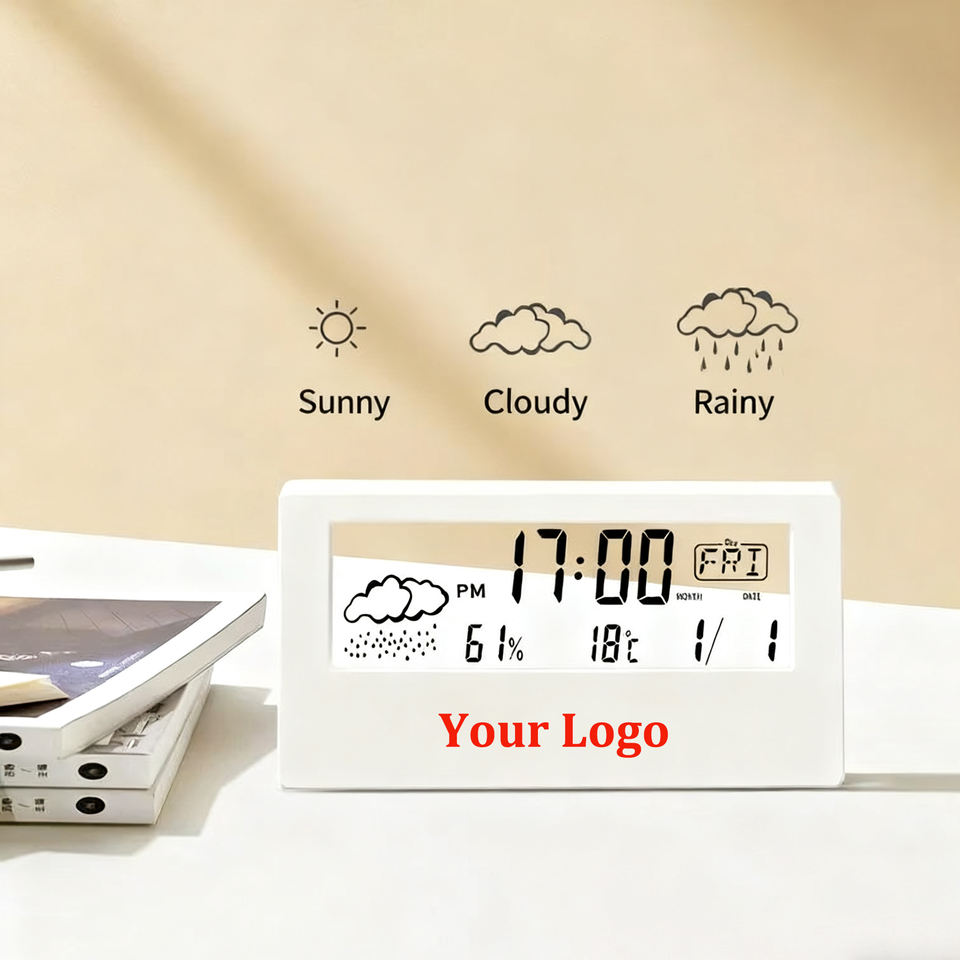 Reloj Despertador Digital LCD Transparente con Logotipo Personalizable, Diseño Moderno, Calendario Electrónico, Temperatura, para Sala de Estar y Cocina
