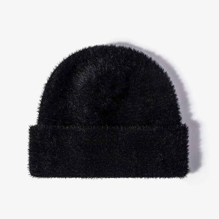 Logo Knit Winter Color Block Stripe Fluffy Beanie Warm Fuzzy Knit Winter Hat Mohair Beanie