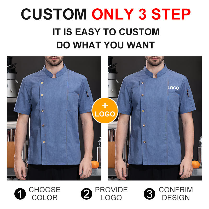 Uniformes de restaurante con logotipo, abrigo de Chef de manga corta, chaqueta, camisa de trabajo duradera, uniforme de cocina, Chef