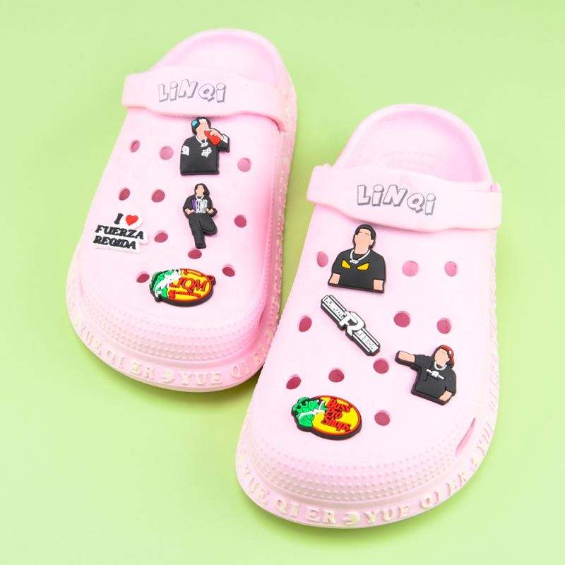 Abalorios para Zapatos Estilo Logo, Negros, para Zuecos, con Diseños de Cantantes Pop como Taylor, Karol G y Selena
