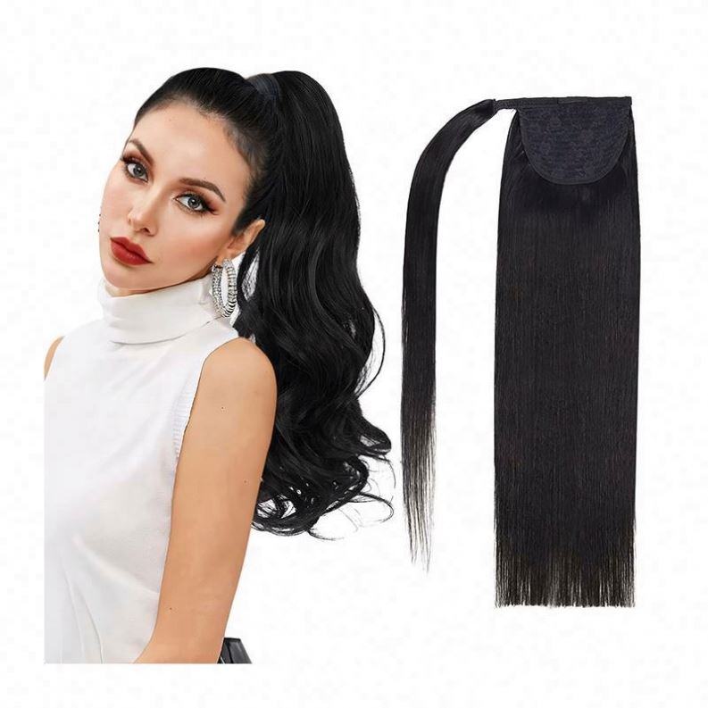Nombre del Producto:Extensiones de cabello humano con clip de cola de caballo envolvente