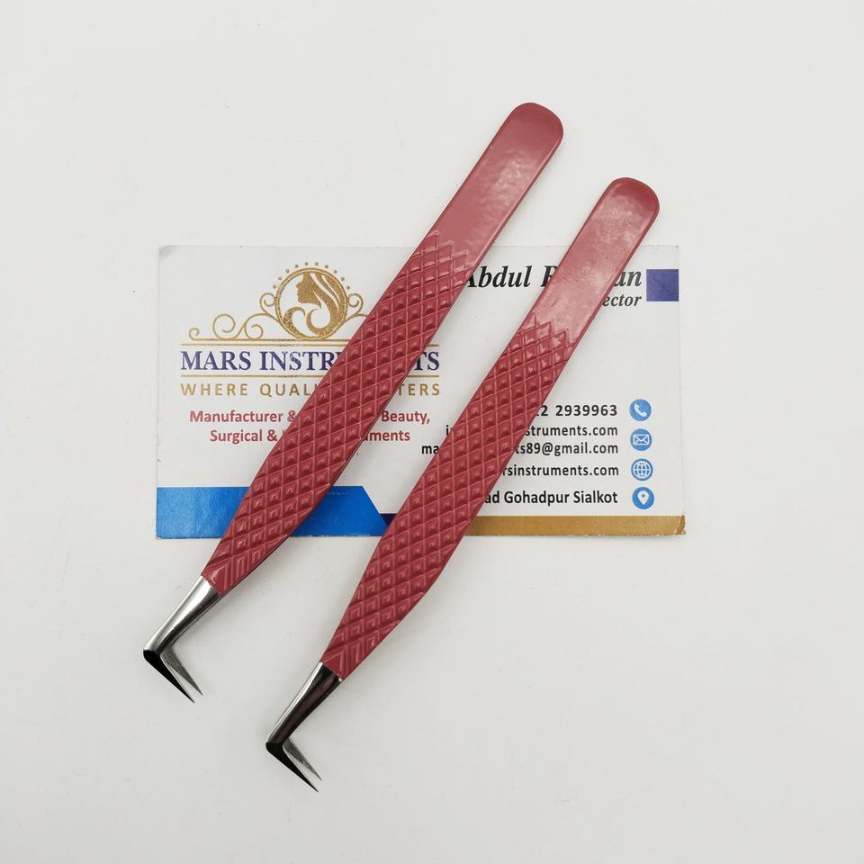 Pinzas de extensión de pestañas sostenibles con mango de agarre de diamante de volumen largo
