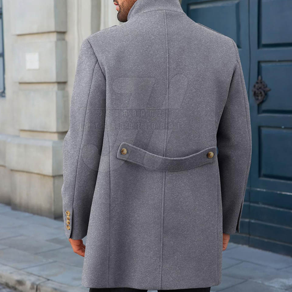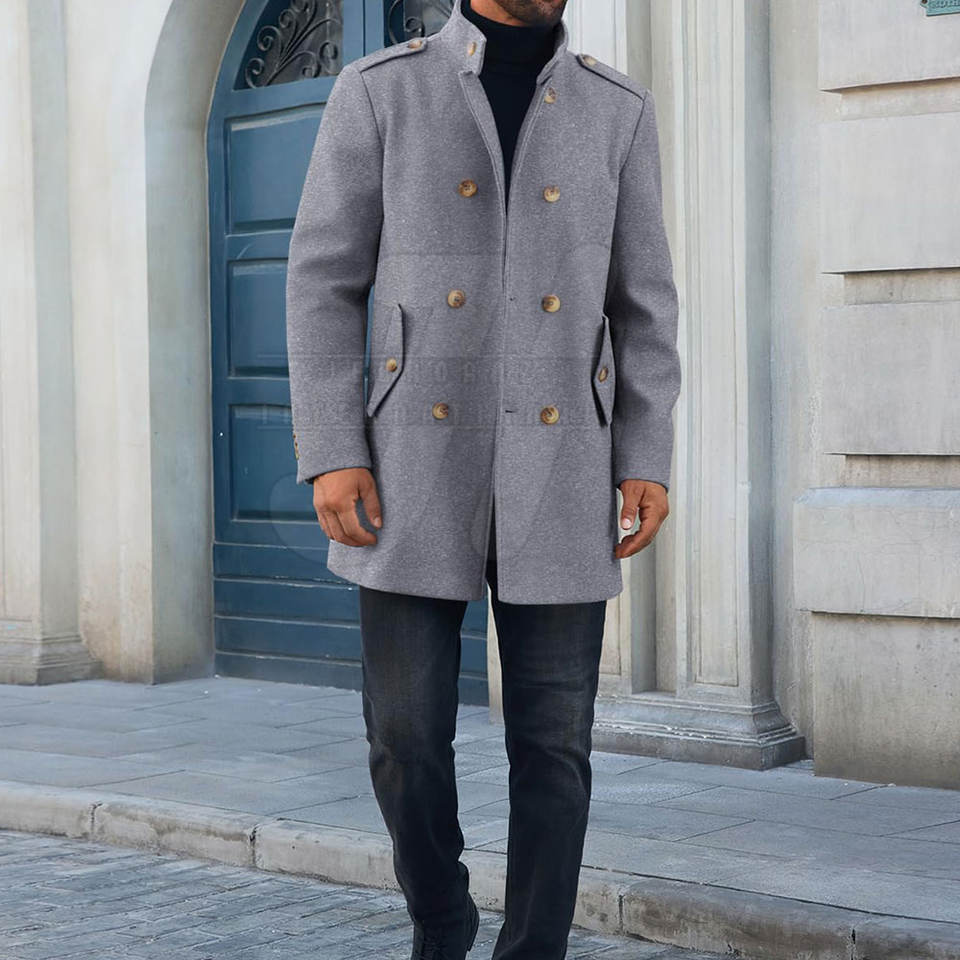 Abrigo largo con botones para hombres con acabado elegante y abrigo de invierno informal para hombres de longitud larga