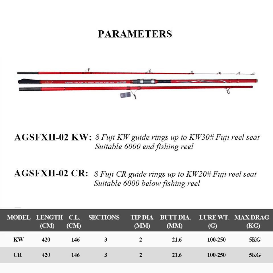 Caña de Surf de Lanzamiento Largo con Anillas Fuji Antienredos 4.2m 3 Secciones 100-250g Peso de Señuelo Fibra de Alto Carbono