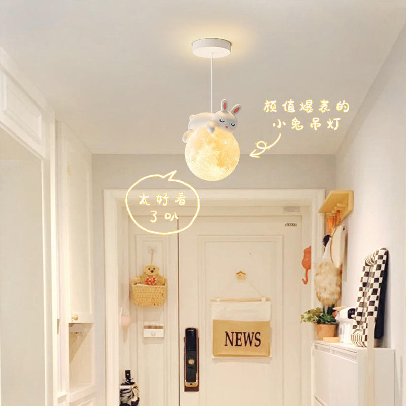 Lámpara Colgante de Conejo Estilo Crema con Cable Largo, Iluminación Creativa para Pasillo, Entrada, Vestíbulo, Balcón, Lámparas de Araña, Lámparas Colgantes