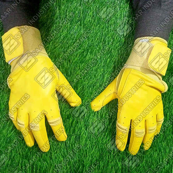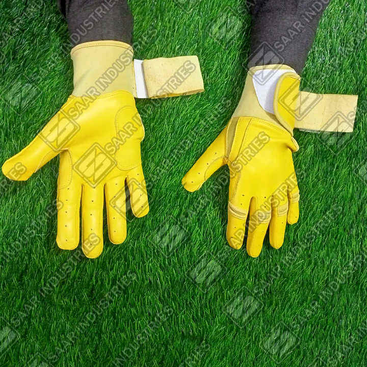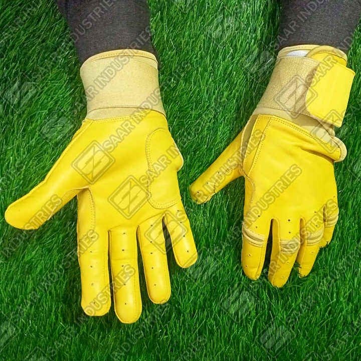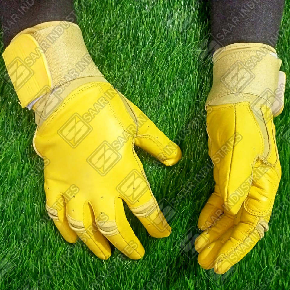 Guantes de bateo de béisbol de cuero de vaca genuino de Color amarillo con puño largo Guantes de bateo de béisbol y softbol de tamaño adulto y juvenil