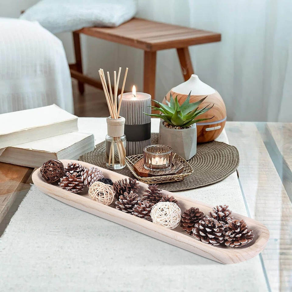 Bandeja de madera decorativa larga Tazón de masa tallado a mano para un estilo natural para el hogar y centros de mesa únicos