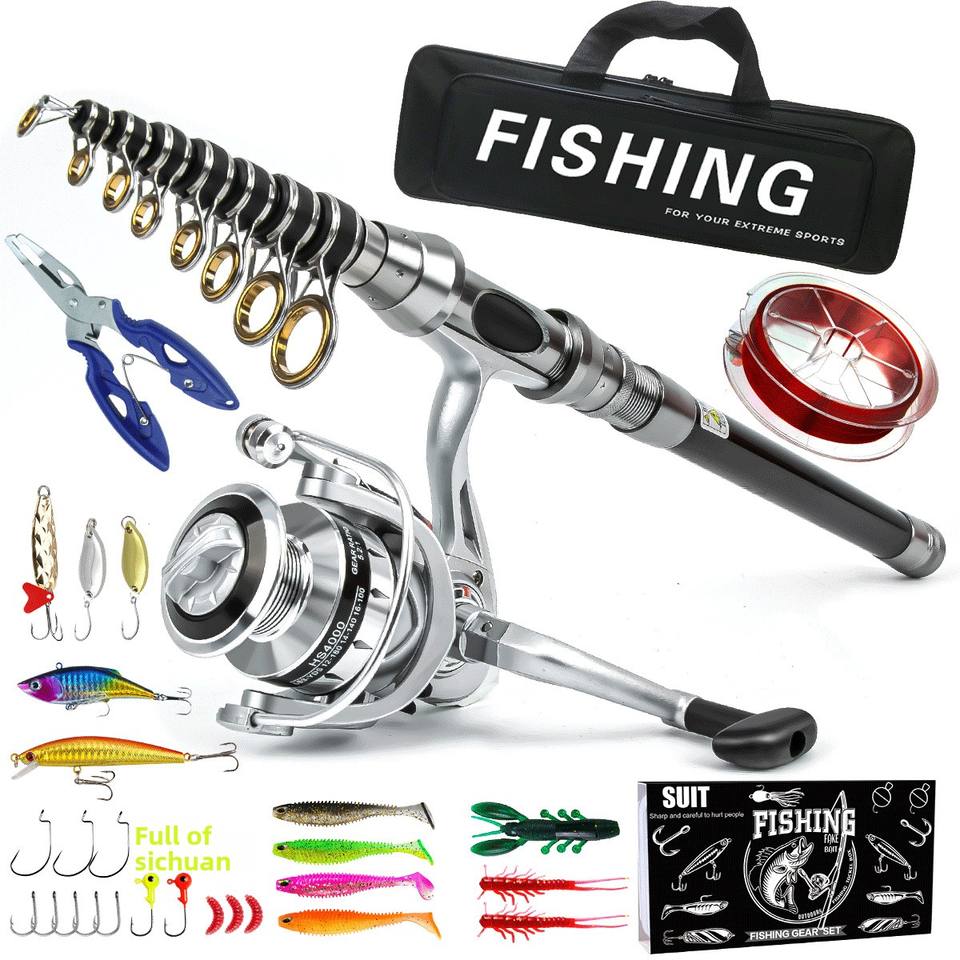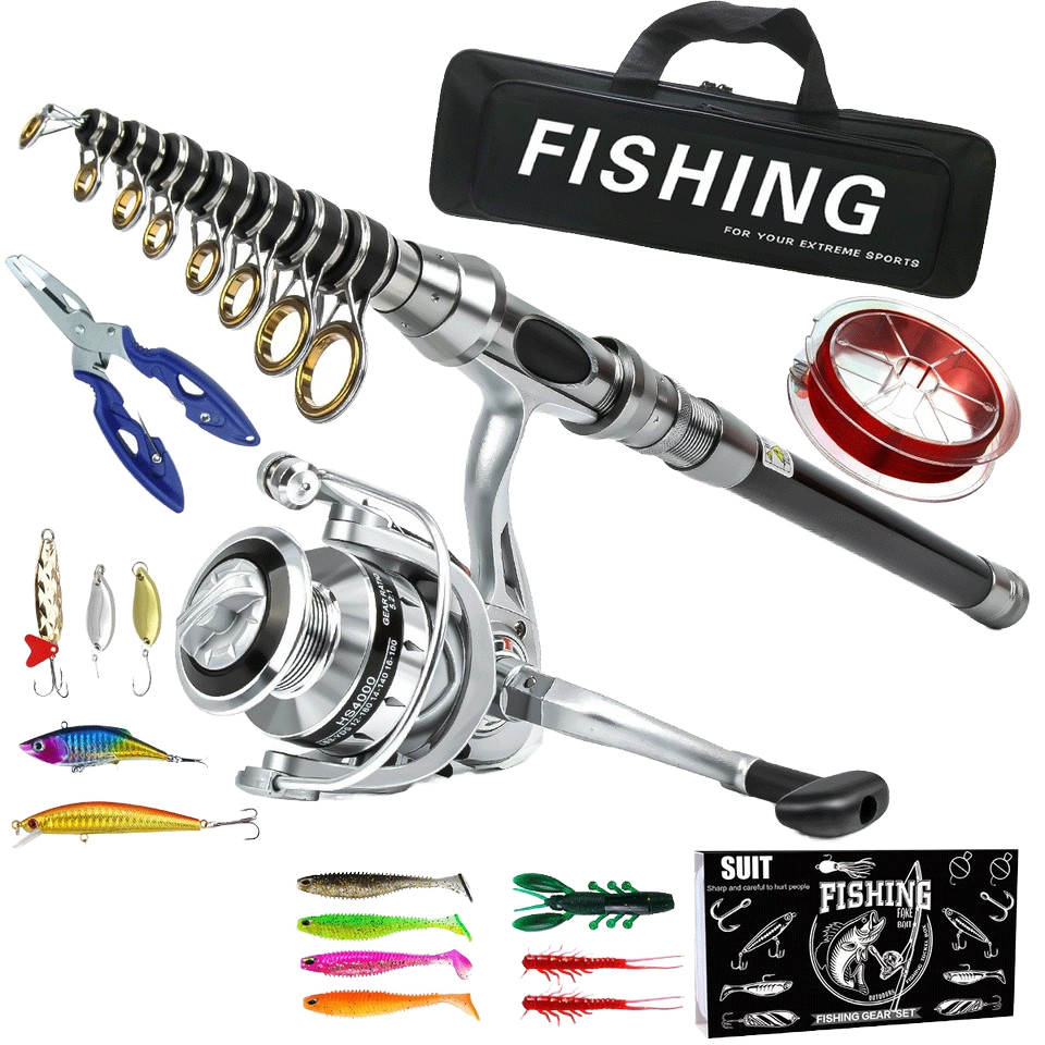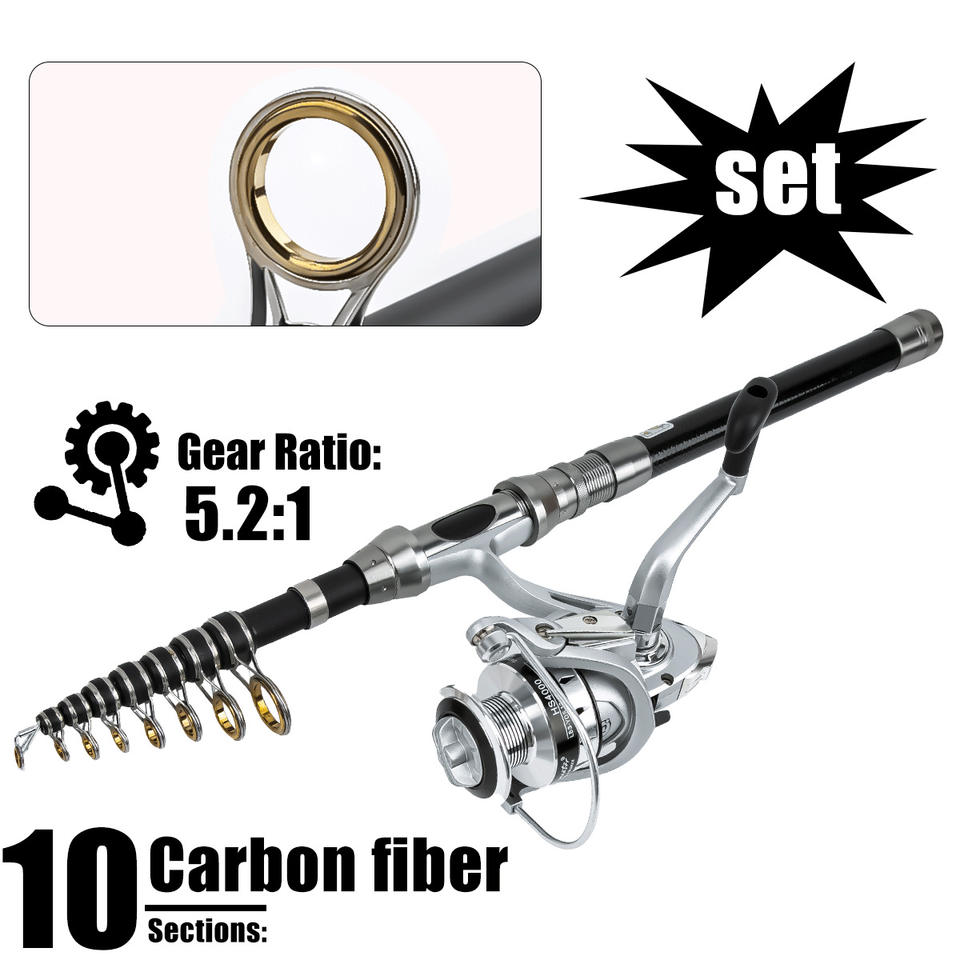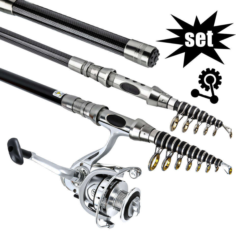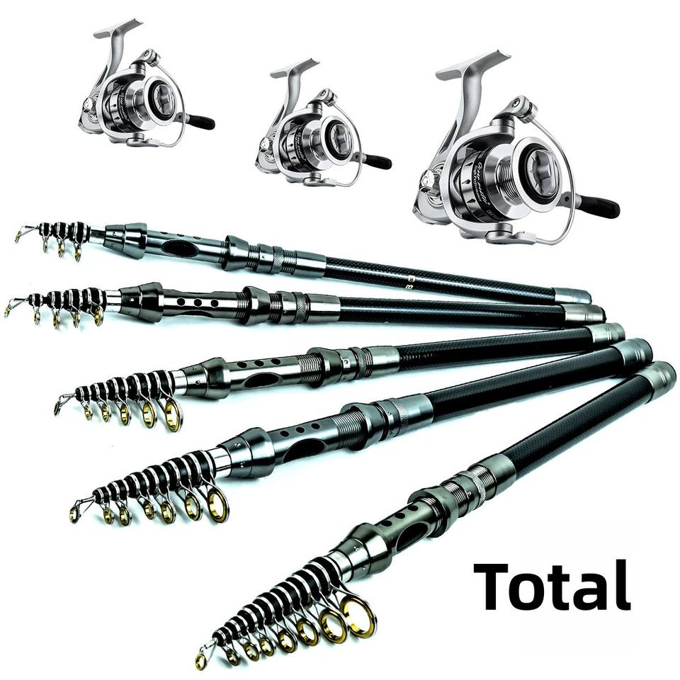 Combo de Pesca con Señuelos de Largo Alcance, Caña de Pescar Telescópica de Carbono, Carrete Giratorio, Pesca de Fondo, Mar, Lago, Río, Carpa, Lubina, Trucha