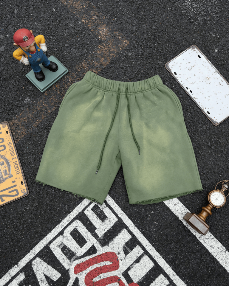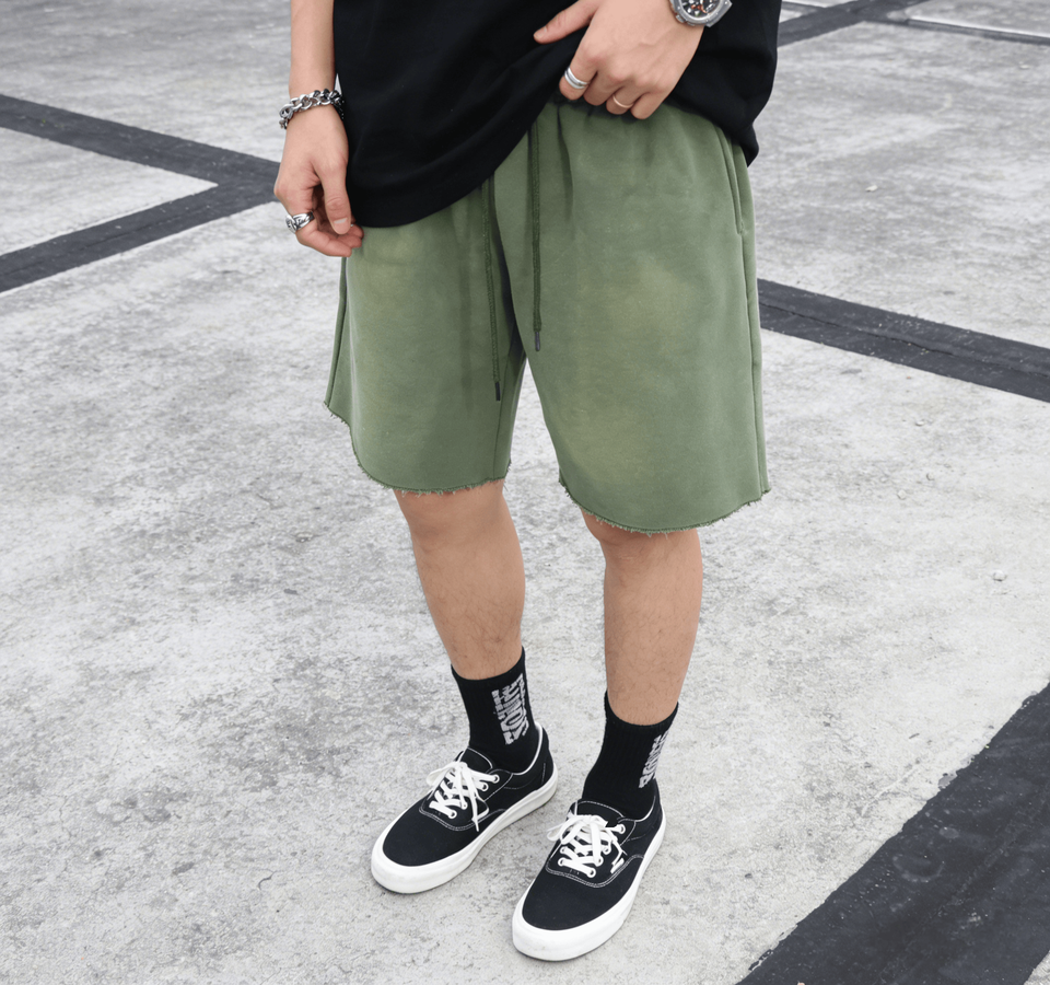 Pantalones Cortos de Algodón French Terry para Hombre, con Cordón Largo, Estilo Vintage, Desgastados, con Gráficos Personalizados, Lavado Ácido