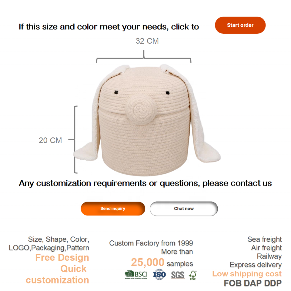 Nombre del producto:Cesta de Almacenamiento de Cuerda de Algodón con Diseño de Conejo Cerdo Adorable