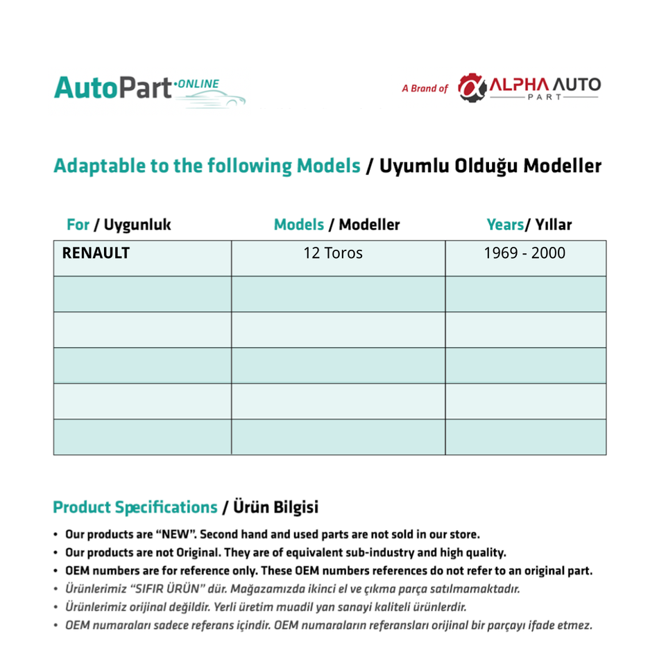 Horquilla de freno delantero larga para Renault 12 Toros (envío desde el fabricante de Turquía) Código de producto: HB2209