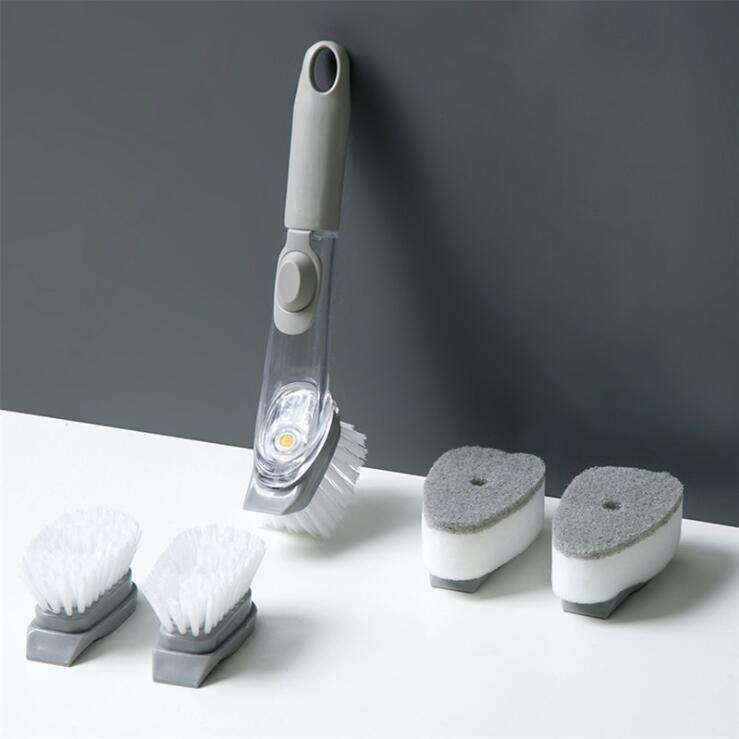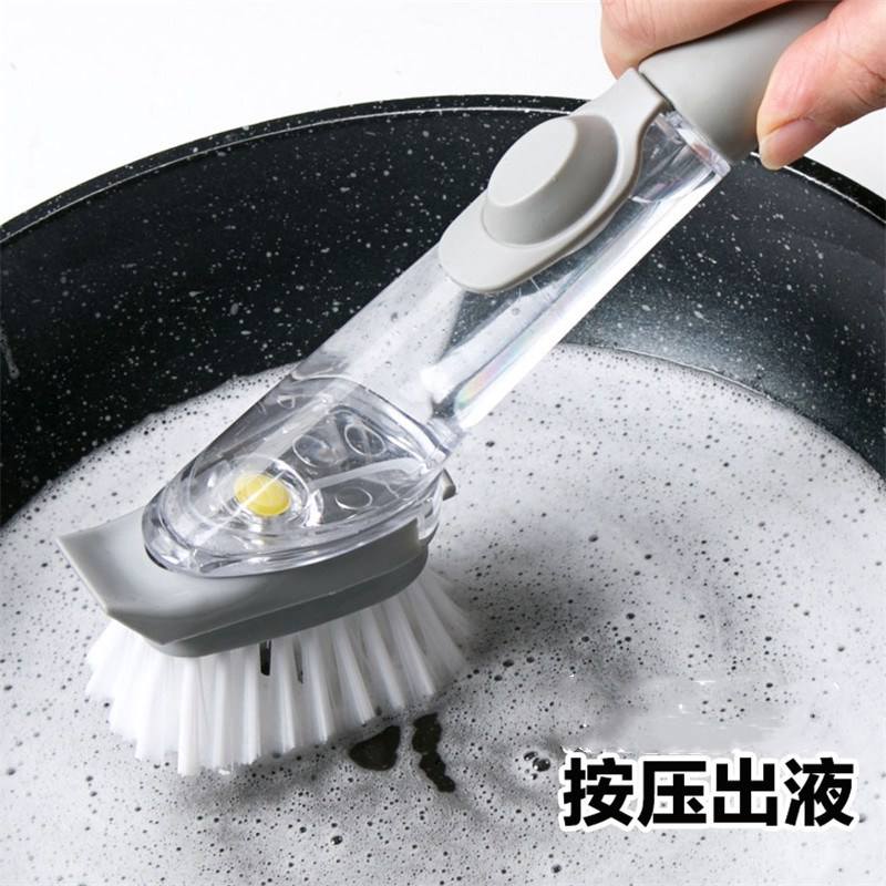 Cepillo hidráulico de mango largo con dispensador de jabón para limpieza de platos, cepillo de nailon