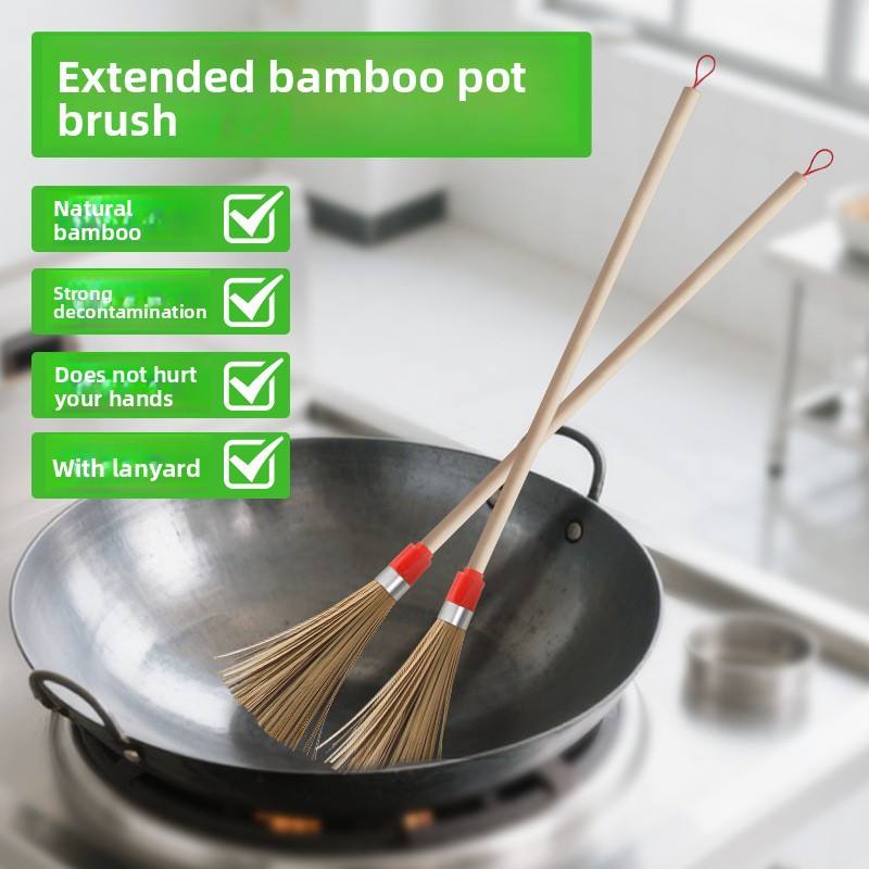 Cepillo de cocina de silicona de mango largo, cepillo grande para limpiar ollas, ideal para la escuela y el hogar rural, para lavar ollas