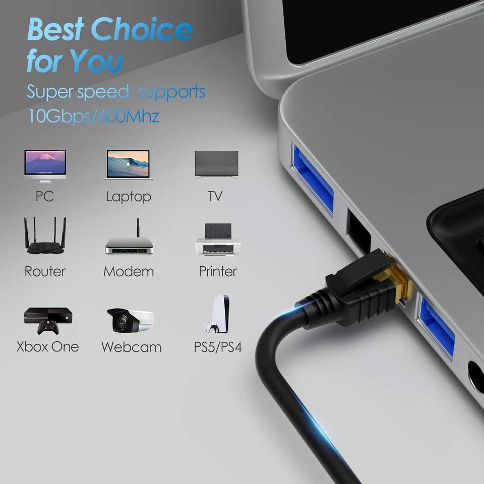 Cable de Internet largo de alta velocidad blindaje SFTP 10Gbps 600Mhz Cable de parche Cat 7 Cable Ethernet RJ45 Cable de red LAN
