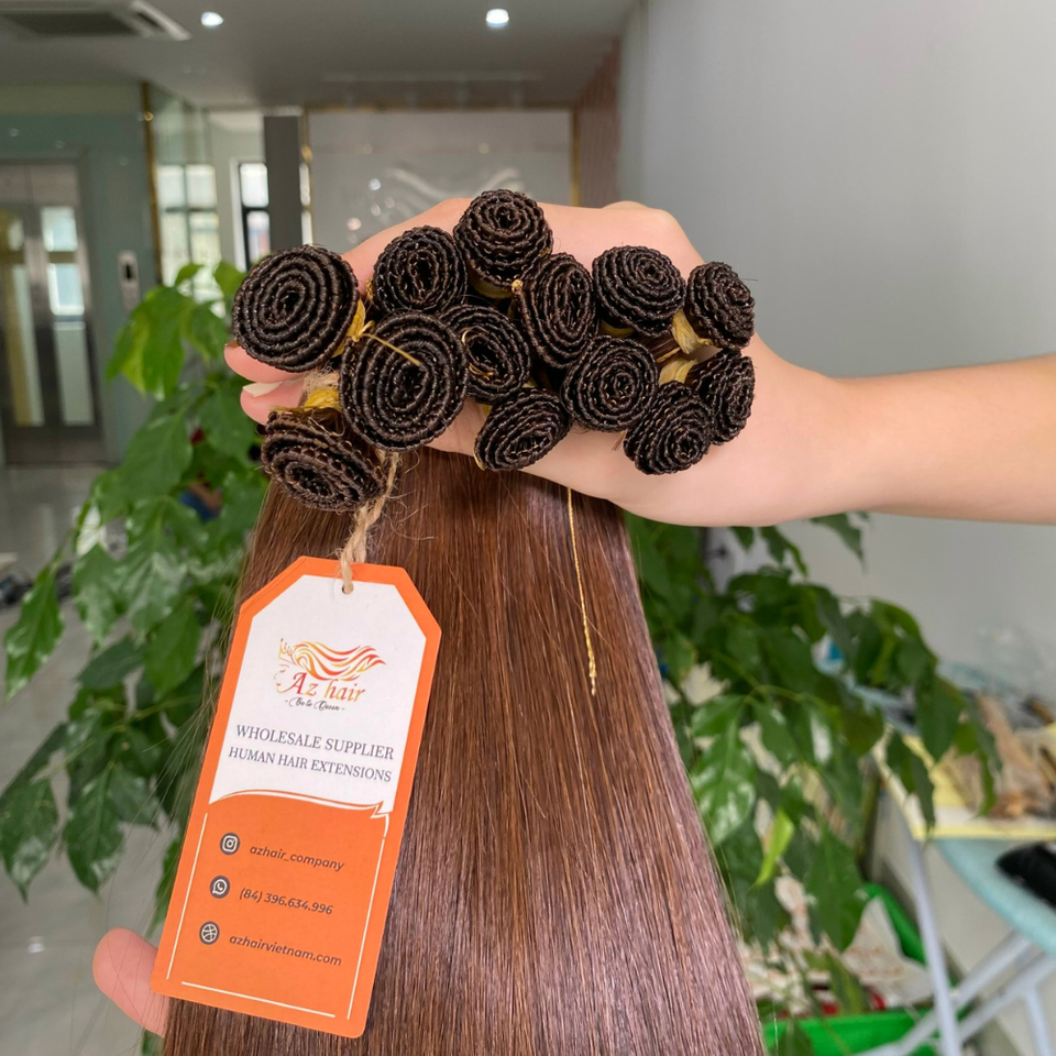 Extensión de cabello de 2 años de larga duración, tejido a mano, grado de cabello vietnamita sin procesar, Color y longitud personalizable 12A