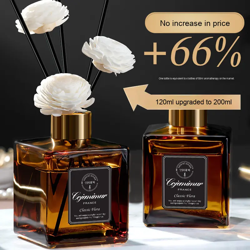 Vidrio sin fuego de larga duración para juego de difusor de caña Aceite esencial de aromaterapia para el hogar y el hotel Producto de calidad premium