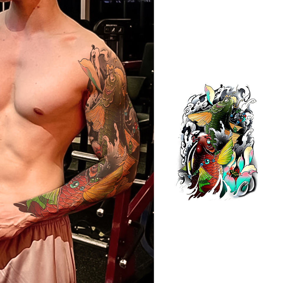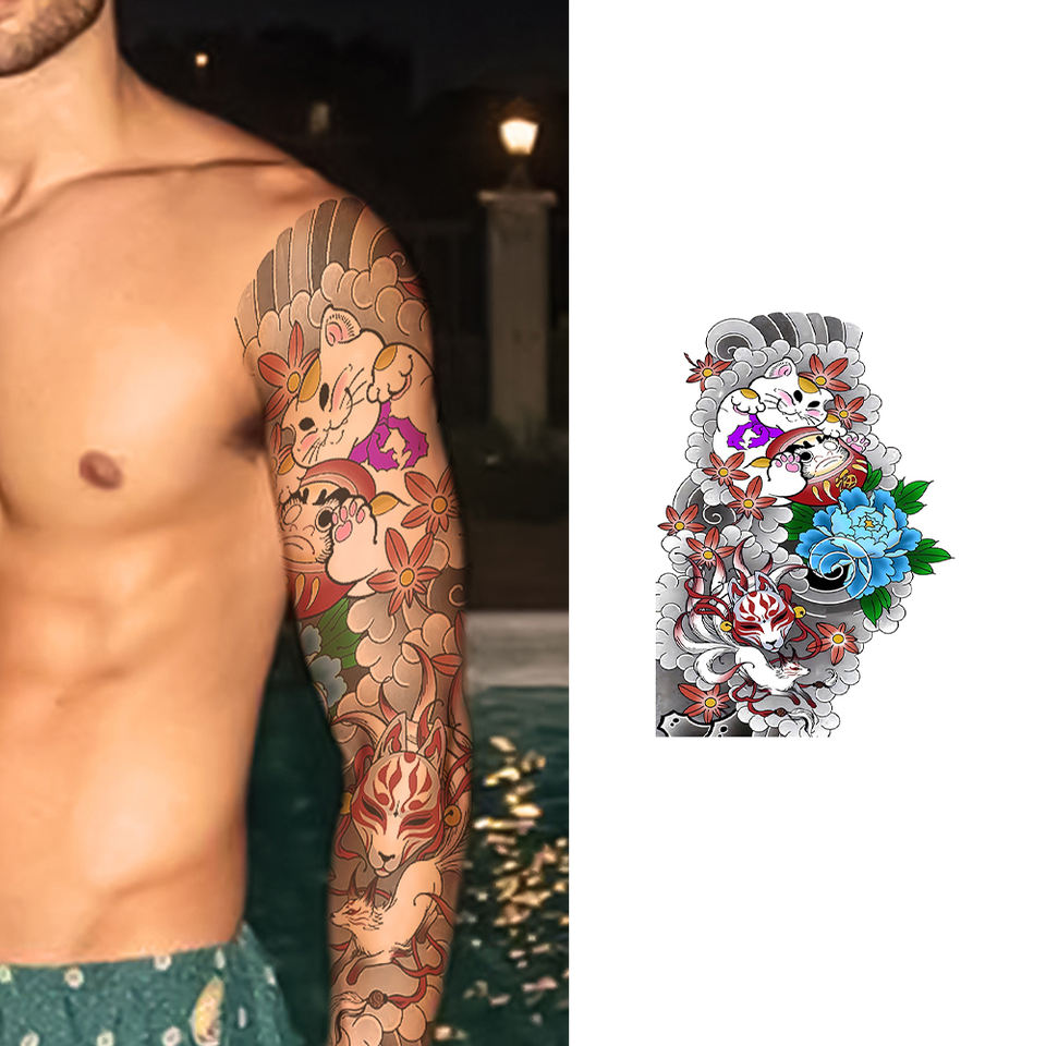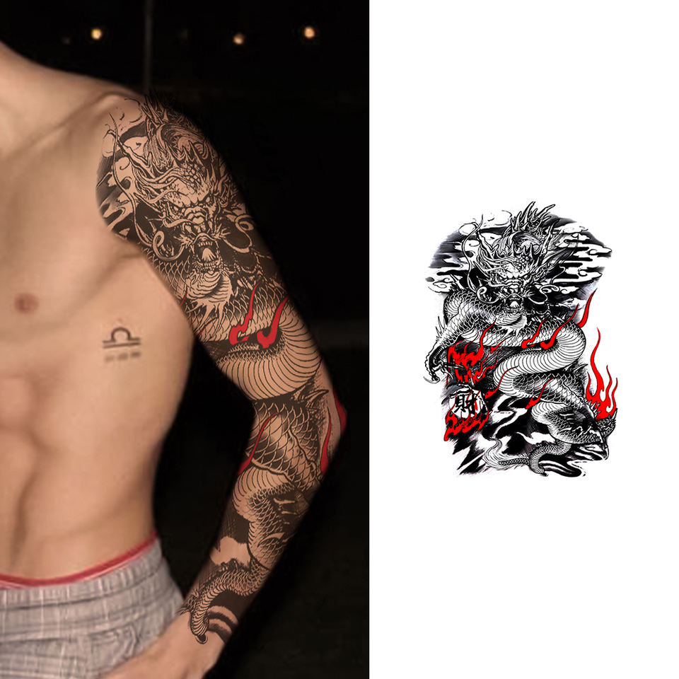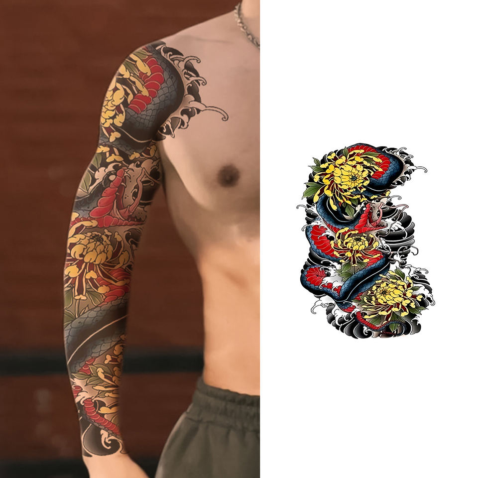 Etiqueta engomada del tatuaje temporal del brazo completo de larga duración Diseño tribal seguro para hombres Color blanco Transferencia de agua Plantilla del cuerpo Papel impreso