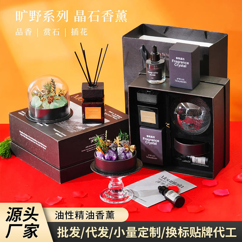 Difusor de cristal de aromaterapia para interiores de larga duración sin fuego con caja de regalo del reino secreto soporte de incienso de adorno interior creativo