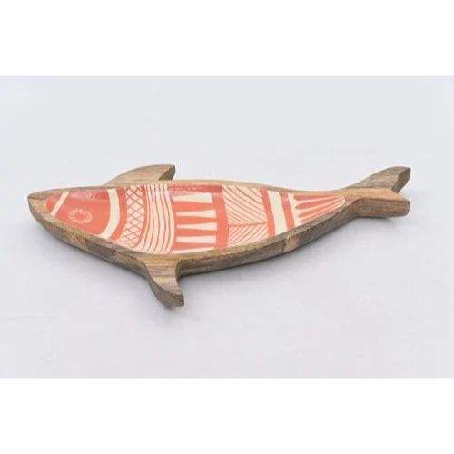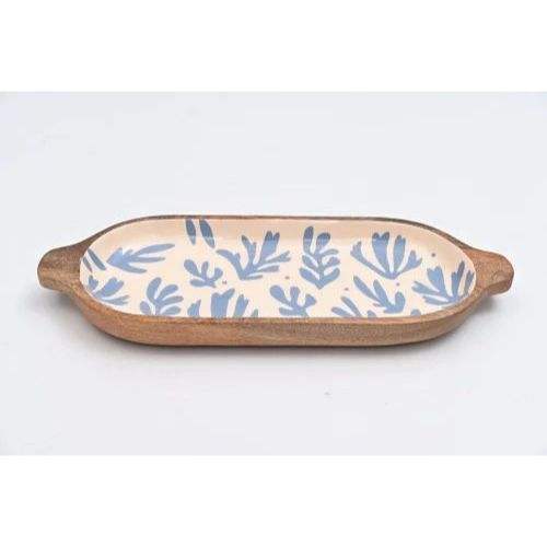 Bandeja Ovalada Larga de Madera con Diseño Esmaltado, Ecológica, Hecha a Mano, Moderna, para Servir Aperitivos, Bocadillos en Bodas y Diwali