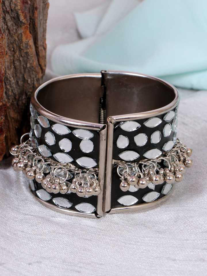 Product Name:Mirror Work Long Oxidised Silver Jewellery Set