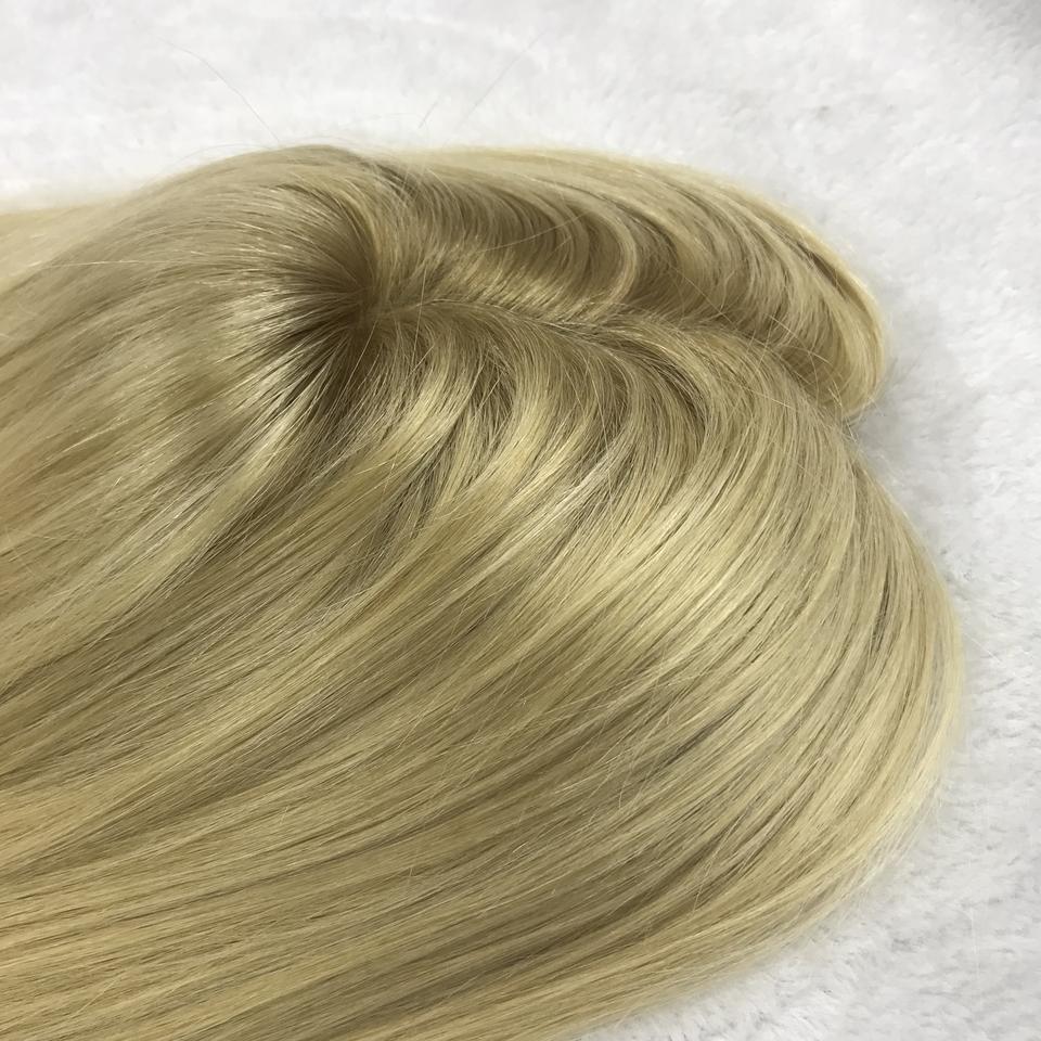 Nombre del producto:Peluca delgada pequeña Auburn Clip en las mujeres Cabello humano Topper Rubio