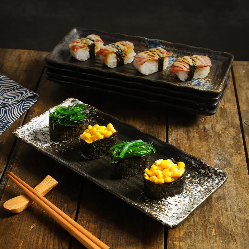Plato Rectangular Largo a Rayas para Exhibición de Postres en Hoteles y Restaurantes, Uso Comercial, Platos de Sushi, Juego de Platos de Cerámica