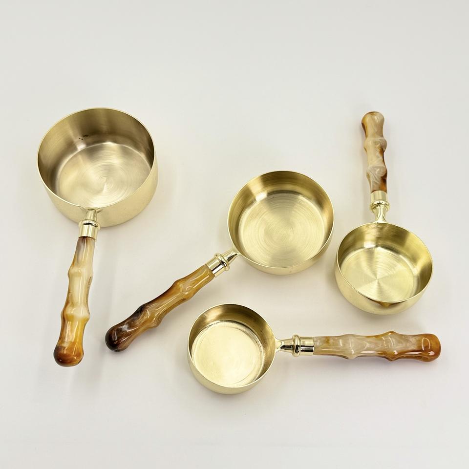 Juego de cucharas medidoras con mango largo de resina, cucharas de café de acero inoxidable 202, cucharas de madera para polvo de café, cucharas medidoras para repostería