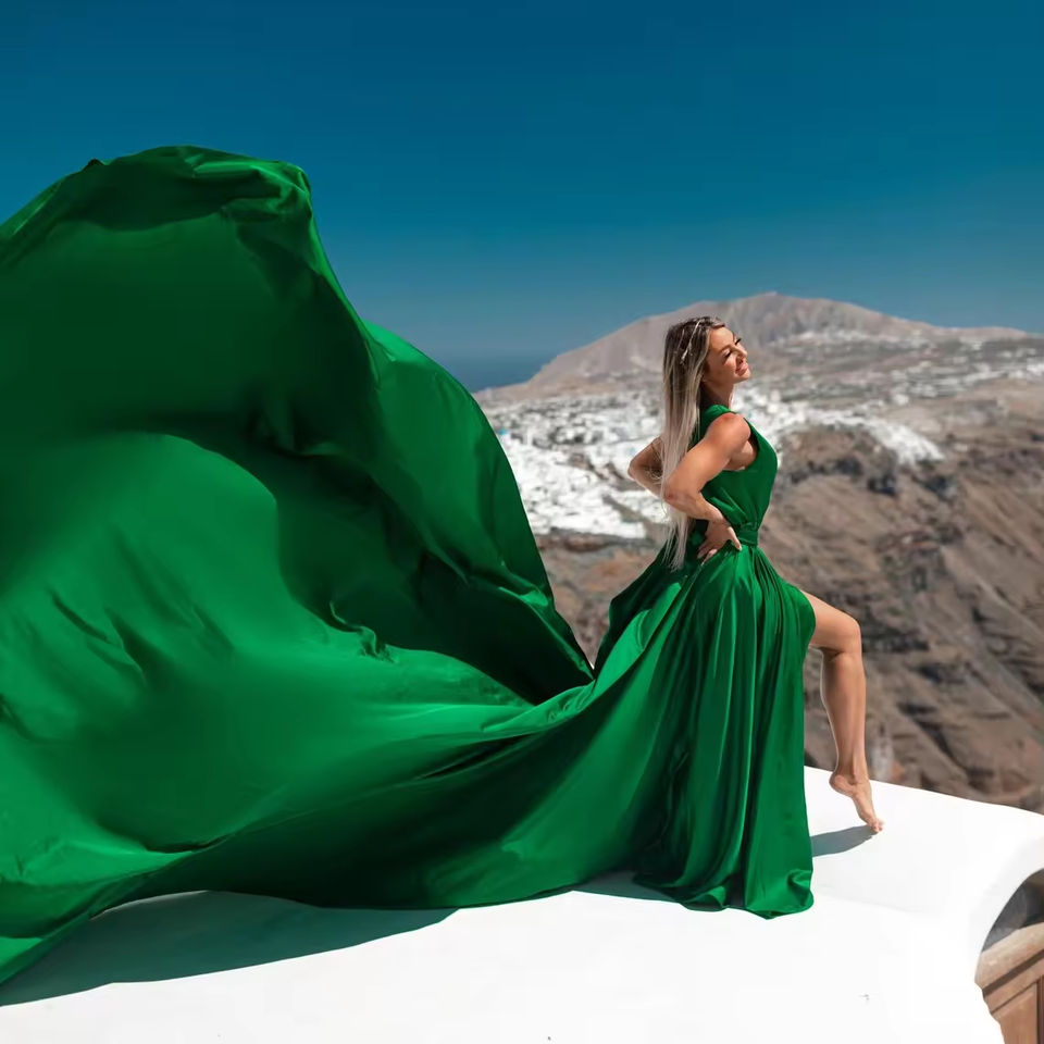 Vestido volador de seda larga con tren convertible para sesiones de fotos para Baby Shower u ocasiones especiales