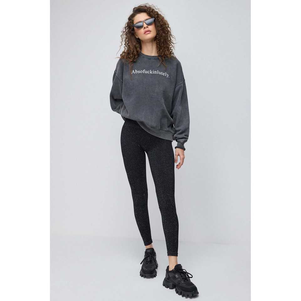 Sudadera Holgada con Cuello Redondo y Estampado Lavado de Manga Larga