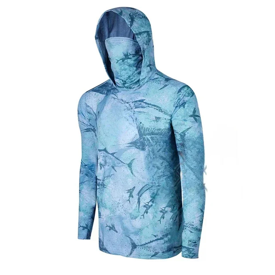 Sudadera con capucha de pesca de rendimiento de manga larga con máscara facial Protección solar integrada Diseño personalizado de secado rápido para pescadores y Deportes