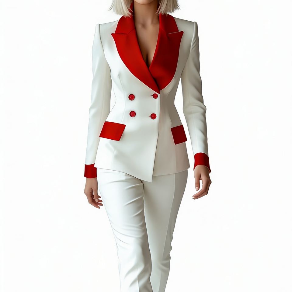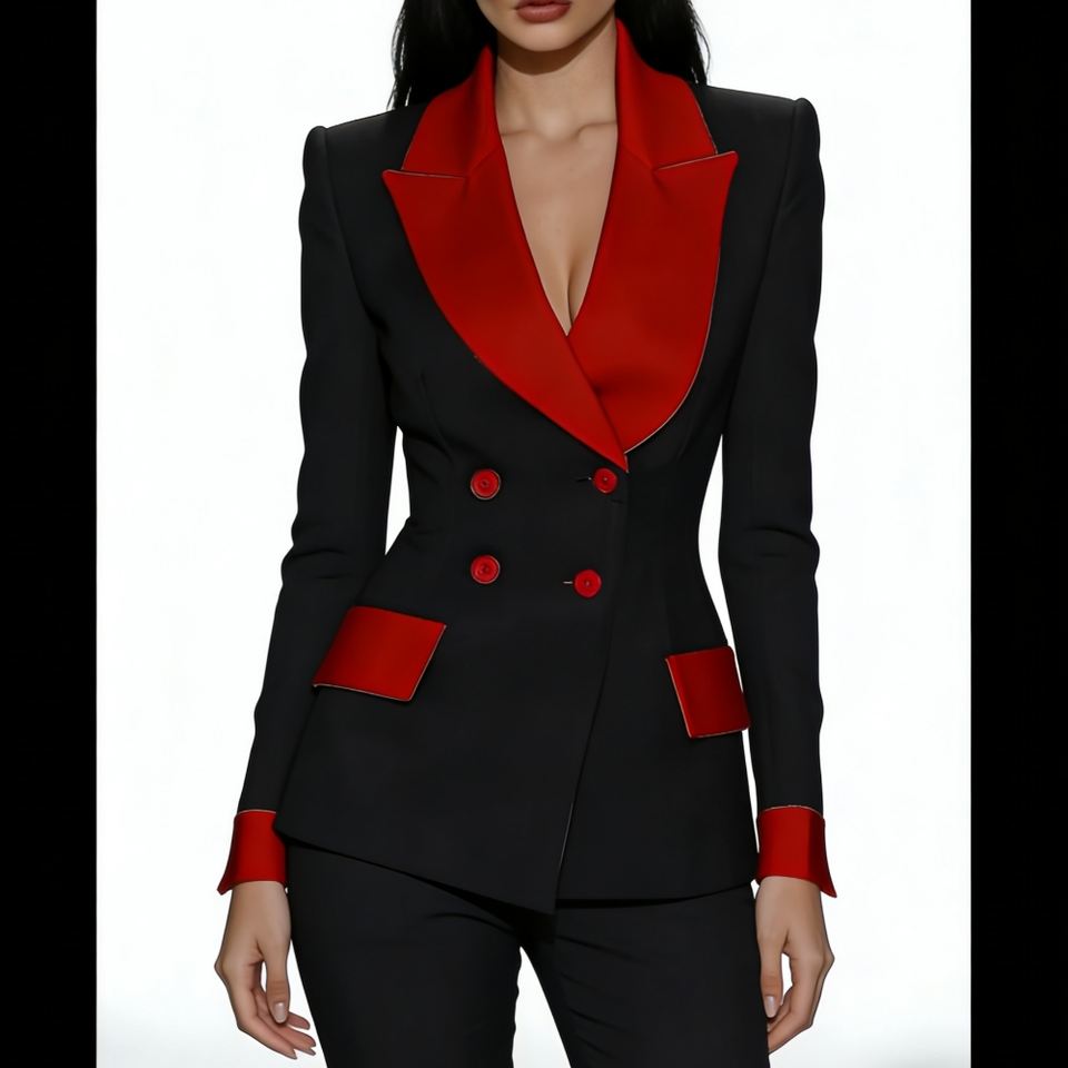Traje de Manga Larga con Botones y Cuello en Contraste a la Moda
