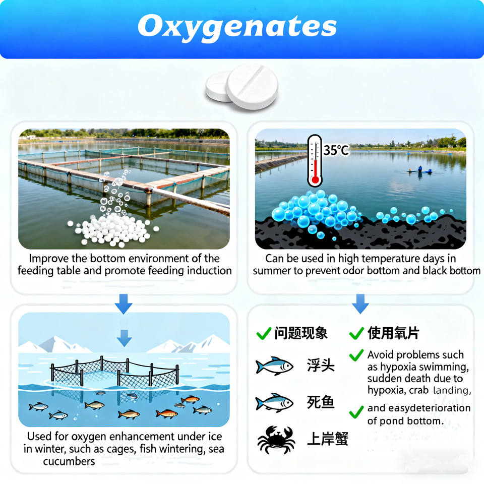 Tabletas de Oxígeno de Liberación Lenta para Estanques de Peces, Camarones y Cangrejos (12% Oxígeno) 200g/400g para el Fondo