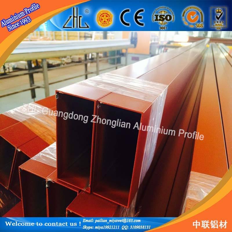 Tubo hueco cuadrado de aluminio para uso a largo plazo, perfil de tubo cuadrado de aluminio de grano de madera recubierta de polvo de bronce anodizado Natural/tubo hueco cuadrado de aluminio