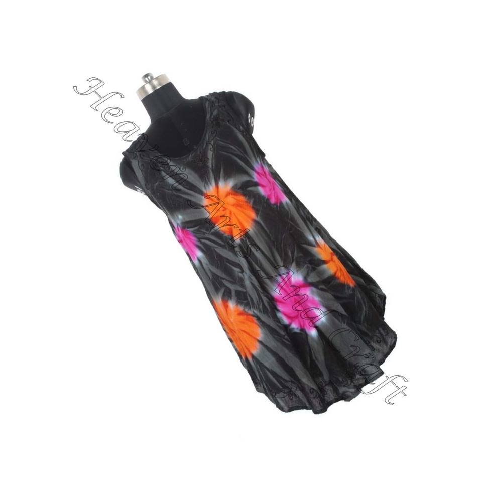 Largo Tie Dye Maxi vestido escote redondo sin mangas 100% tela de rayón Maxi vestido Tie Dye largo Maxi vestido hecho a mano con mangas