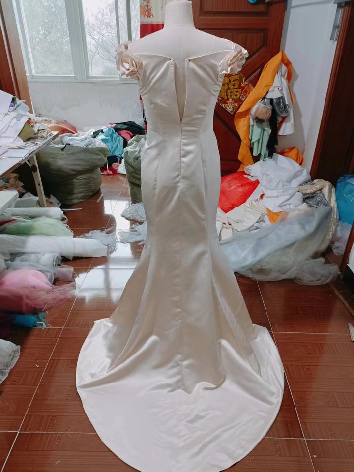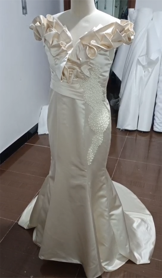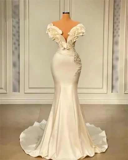 Vestido de Novia Largo Blanco Marfil para Mujer, Vestido de Recepción, Estilo Sirena de Satén con Perlas, Vestidos de Novia
