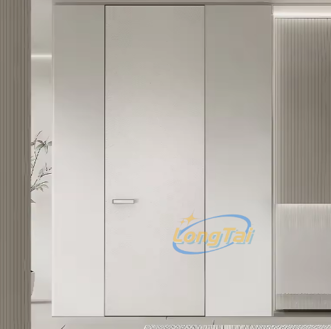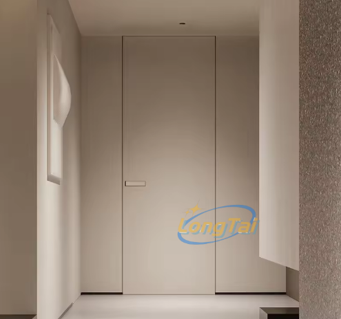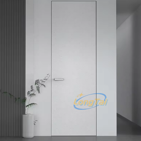 LongTai Diseño popular Marco oculto Puerta de madera de aluminio Marco invisible Puerta de habitación con panel de pared