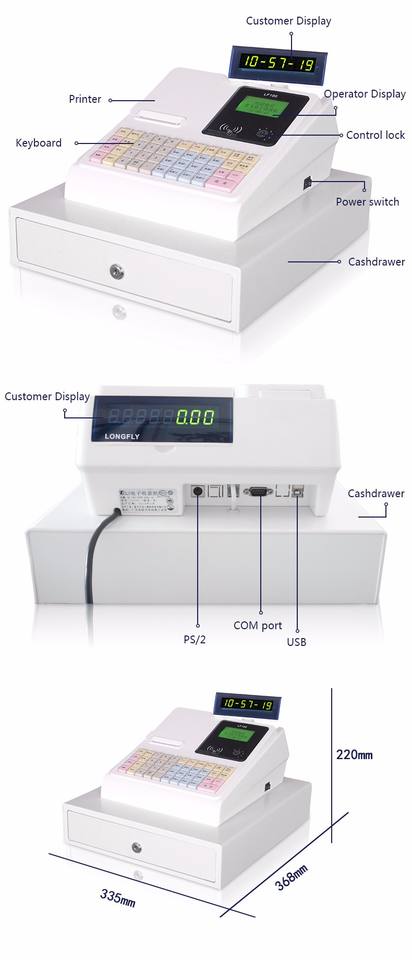Longfly LF100 Old POS System Machine 8 dígitos LED 45 teclas Pantalla LCD Fábrica Terminal de caja registradora electrónica barata