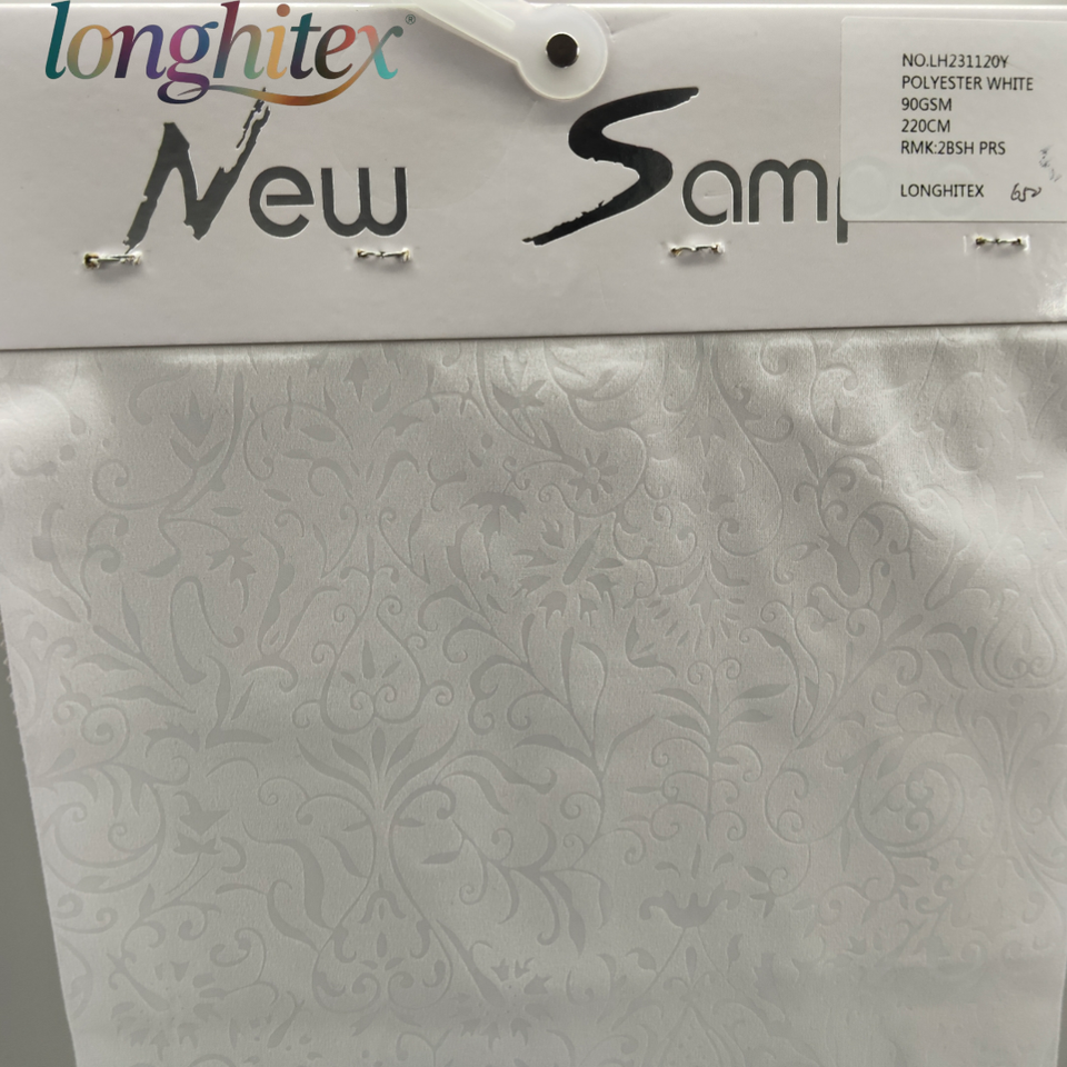 Longhitex Precio de fábrica 100% Poliéster Sábana blanca 250cm Longitud 115GSM Tira de diseño prensado para prendas de niñas