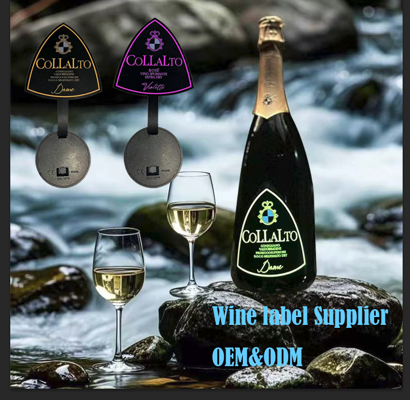 Longstargift logotipo personalizado para champán LED PET botella etiqueta autoadhesiva Noche Oscura resaltado para ocasiones de Año Nuevo