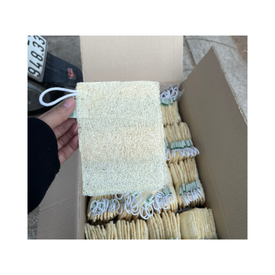 Esponja de lufa, esponja de lufa suave con malla de algodón para juegos de baño y tienda minorista, cuidadosamente hecha a mano en Vietnam