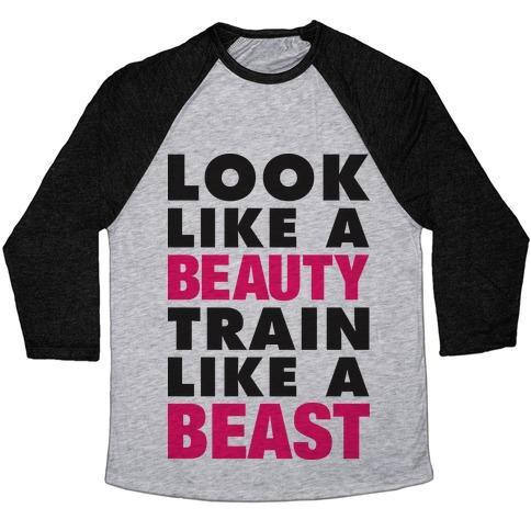 Camiseta de béisbol unisex Tri-Blend con estampado Look Like a Beauty, Train Like a Beast