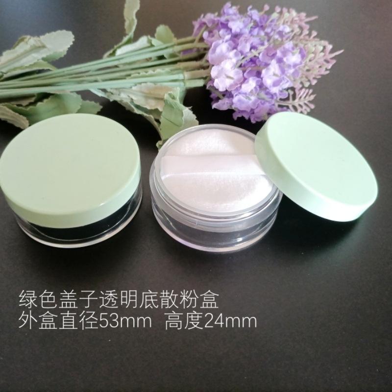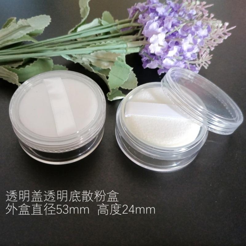 Caja de polvos sueltos con tapa transparente y fondo transparente.